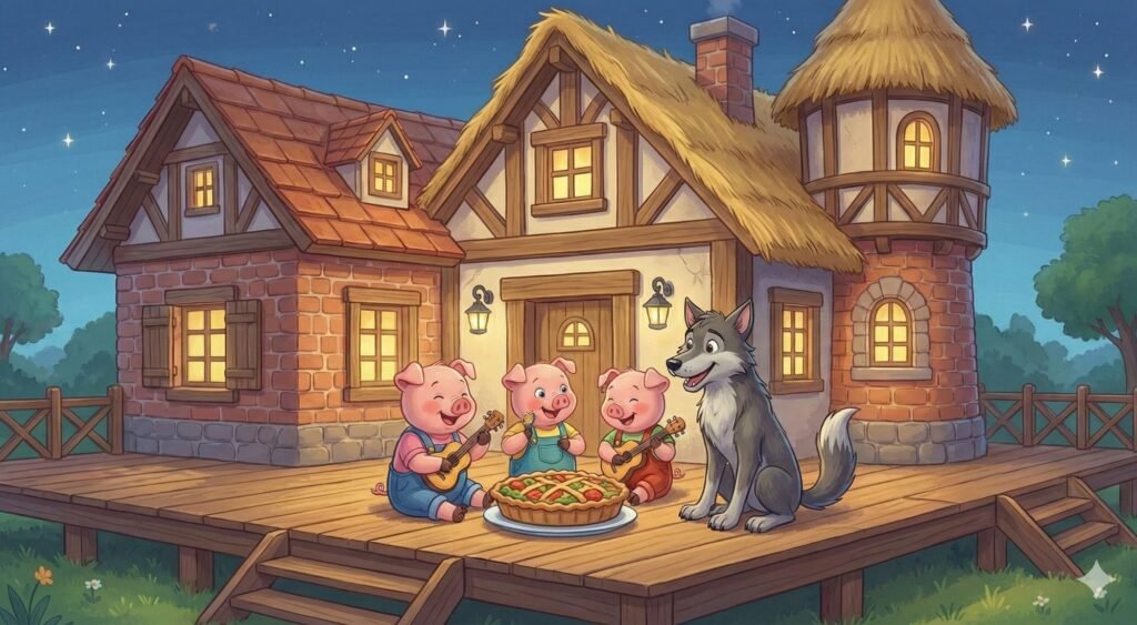 Viņi saprata svarīgu lietu: nav svarīgi, cik stipra ir tava māja, vissvarīgākais ir tas, ka tev ir draugi, ar kuriem tajā dalīties. Un pat vislielākais pūtējs un elsējs var kļūt par labāko palīgu, ja vien viņam dod iespēju.